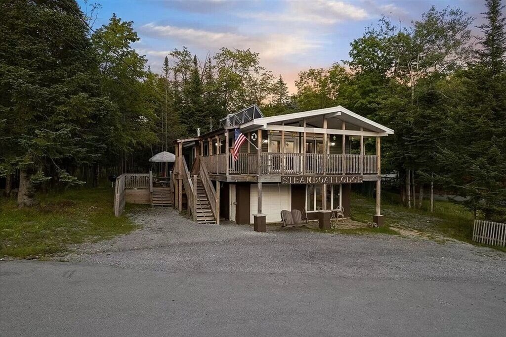 5 Bedrooms • 3 Bathrooms 3 Baths • Sleeps 12Resting in the heart of Old Forge, Steamboat Lodge is steps away to all the possibilities the central Adirondack's have to offer. Steamboat Lodge faces Old Forge Pond which is the gateway to the Fulton Chain of Lakes. Enjoy front row seating for the various firework displays, band concerts, drawings, and events right from the lodges large covered deck. Of course your vacation would not be complete without a tour of the Fulton Chain. Steamboat Lodge offers a private, shared sandy beach, as well as a private boatslip for your own boat or boat rental. The swimming is shallow with sandy bottom and the beach area is perfect for little ones to play and easy for parents to keep an eye on.